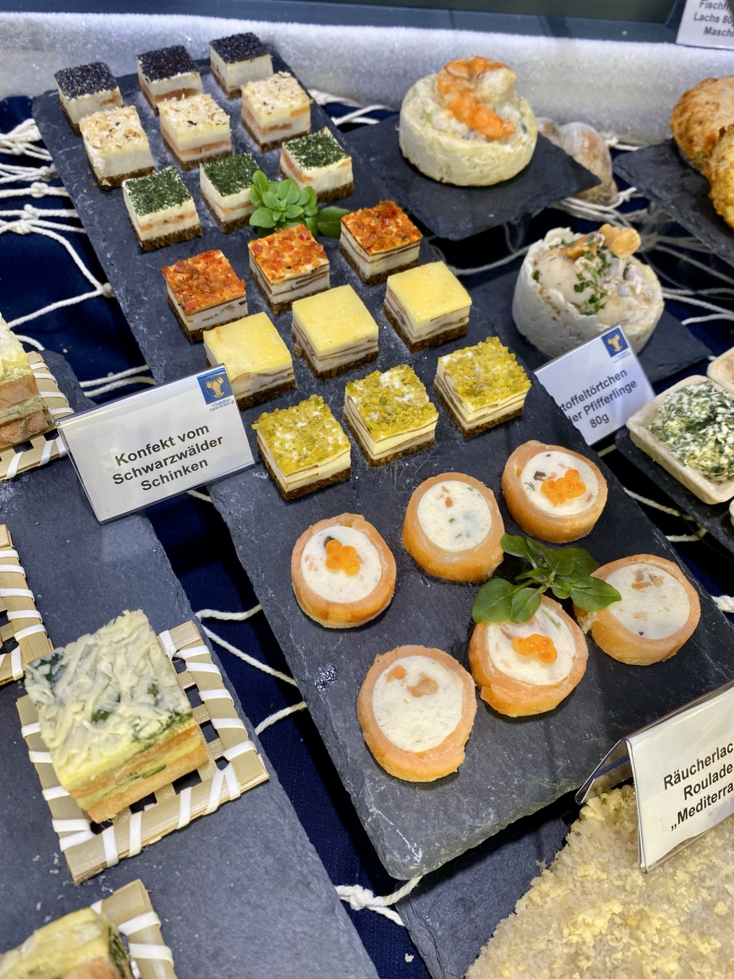 Mit im Gepäck unsere Klassiker: Räucherlachskonfekt und Konfekt-Auslese, Räucherlachsroulade wie auch unsere Lachs-Blattspinat-Terrinen.